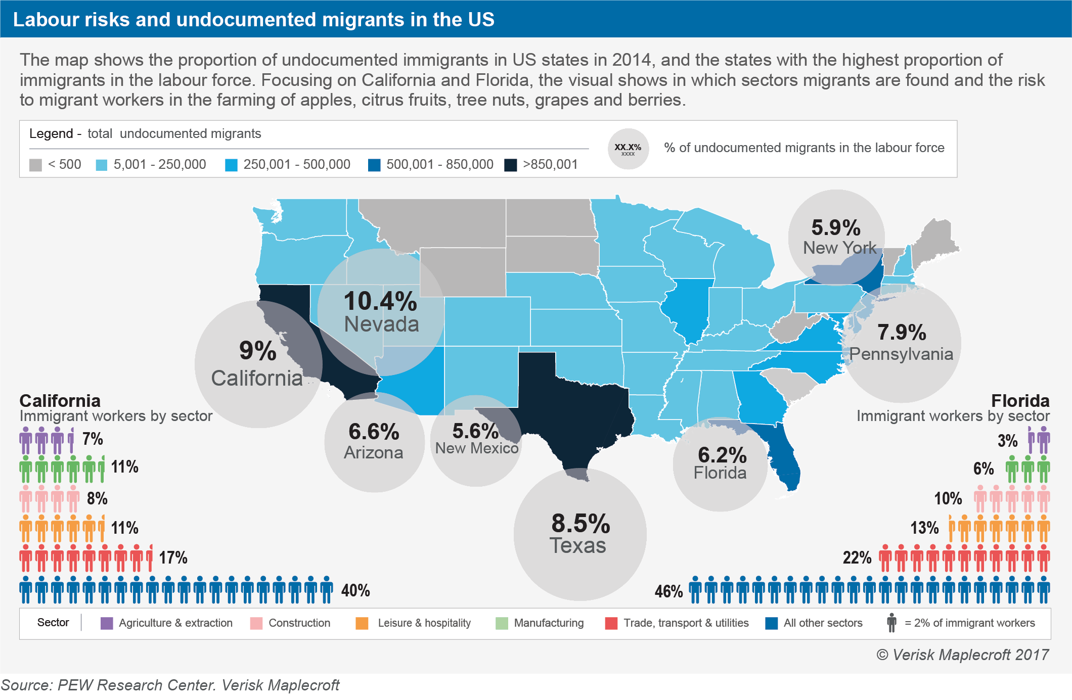 Hardening immigration policy in the US, which is increasing the risk of modern slavery and labour abuses against undocumented workers, has emerged as one of the top drivers of human rights risks for business in 2017.