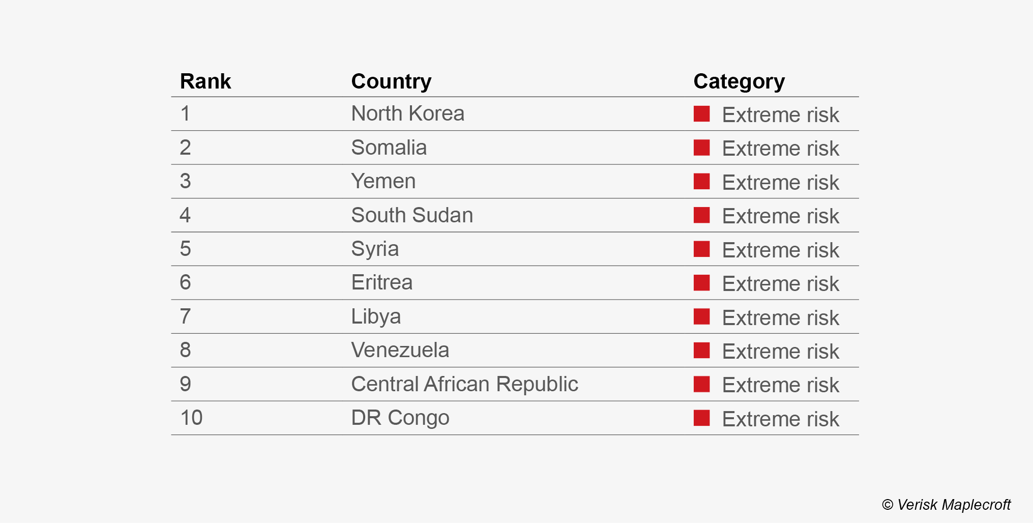 The fact that North Korea performs worse than failing states and countries that are home to extreme levels of conflict and instability is a telling indictment of the country under Kim’s regime. Investors are of course aware of the challenges associated with North Korea, but our latest index data reveals an array of risks without parallel anywhere in the world.